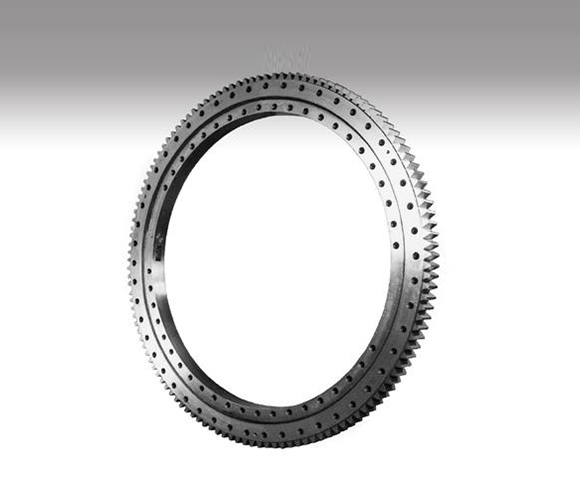 單排四點(diǎn)接觸球式回轉(zhuǎn)支承由兩個(gè)座圈組成,結(jié)構(gòu)緊湊,重量輕,鋼球與圓弧滾道四點(diǎn)接觸,能同時(shí)承受軸向力,徑向力和傾翻力矩,回轉(zhuǎn)式輸送機(jī),焊接操作機(jī),中小型起重機(jī)和挖掘機(jī)等工程機(jī)械均可選用。
