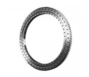 單排四點(diǎn)接觸球式回轉(zhuǎn)支承由兩個(gè)座圈組成,結(jié)構(gòu)緊湊、重量輕、鋼球與圓弧滾道四點(diǎn)接觸,能同時(shí)承受軸向力、徑向力和傾翻力矩?;剞D(zhuǎn)式輸送機(jī)、焊接操作機(jī)、中小型起重機(jī)和挖掘機(jī)等工程機(jī)械均可選用。